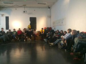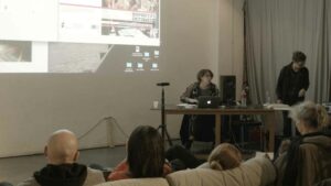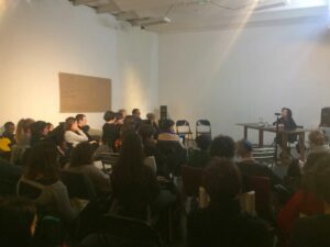 Ces rencontres « Faire-et-penser-ensemble » ont pour objectif de mettre en commun ces recherches, expériences, films (le collectif féministe Vidéo Out, un documentaire sur les mouvements de lutte et d’autogestion ouvrières au XIX au XXe siècle,…), puis de les étayer par un cycle de conférences de philosophe, historiennes et théoriciennes de l’art, afin de poser les bases de différents axes interrogeant et inventant des formes collaboratives pour des communs.