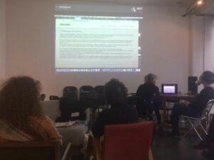 L’objet de cette rencontre via Skype était de présenter l’avancée de la construction de l’arborescence et des choix graphiques pour que les étudiant·e·s lui indiquent ce qu’il·elle·s attendaient de ce site en termes d’identification du projet et comme outil de partage.